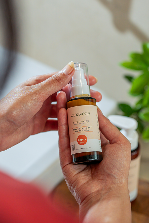 Purified Water, Neem (Azadirachta Indica) Extract, Rasa {Propanediol, Lecithin, Centella Asiatica Extract, Emblica Officinalis Fruit Extract, Hibiscus Sabdariffa Flower Extract, Sodium Lactate, Olive Squalane, Moringa Oleifera Seed Oil, Copper Tripeptide-1, Zinc Pyrrolidone Carboxylic Acid, Asparagus Racemosus Root Extract, Sida Cordifolia Extract, Bacopa Monnieri Extract, Prunus Amygdalus Dulcis Oil, Lactic Acid, Phytosteryl/Octyldodecyl Lauroyl Glutamate, Cassia Angustifolia Seed Polysaccharide}, Glyceryl Stearate, Cetearyl Olivate, Sorbitan Olivate, Vitis Vinifera (Grapeseed) Oil, Oryza Sativa (Rice Bran) Oil, Linum Usitatissimum (Flaxseed) Oil, Honey (Mel), Shikakai (Acacia Concinna) Extract, Triphala (Emblica Officinalis, Terminalia Chebula, Terminalia Bellirica) Extract, Nutmeg (Myristica Fragrans) Extract, Aqua (and) Sodium Levulinate (and) Potassium Sorbate, Vegetable Glycerin, Heptyl Undecylenate, Hydroxypropyl Starch Phosphate, Bakuchiol, Jasmine (Jasminum Grandiflorum) Oil, Lime (Citrus Aurantifolia) Oil, Gingergrass (Cymbopogon Martinii var Sofia) Oil, Sodium Gluconate, Xanthan Gum, Stearic Acid, Benzyl Alcohol
