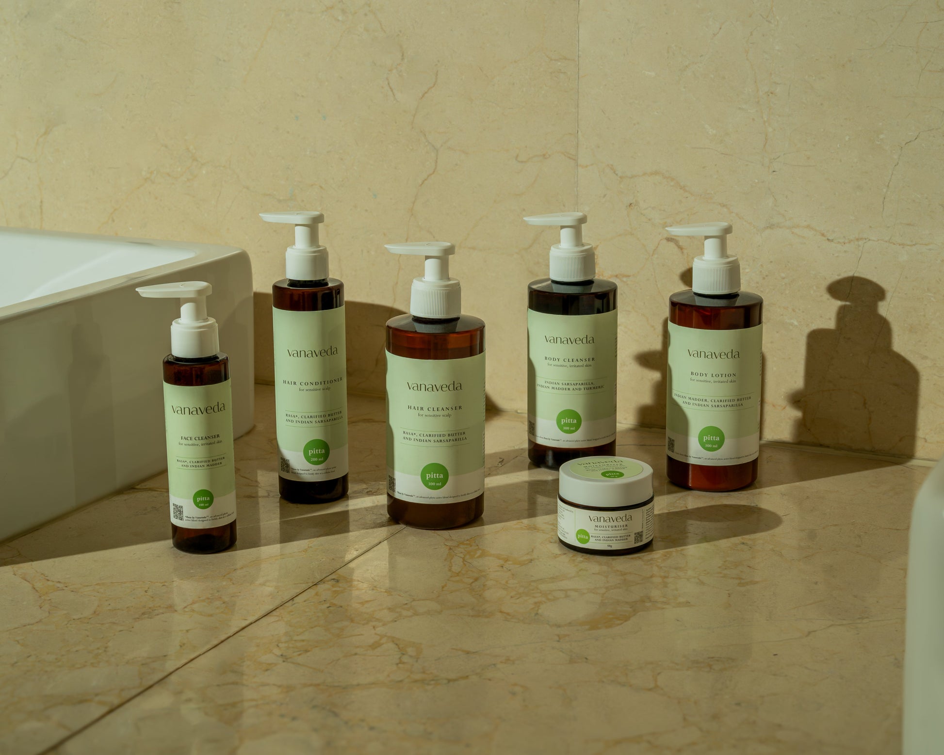 Purified Water, Sariva (Indian Sarsaparilla) Extract, Micronized Zinc Oxide, Rasa {Propanediol, Lecithin, Gotukola (Centella Asiatica) Extract, Amla (Emblica Officinalis) Fruit Extract, Hibiscus (Hibiscus Sabdariffa) Flower Extract, Sodium Lactate, Olive Squalane, Moringa (Moringa Oleifera) Seed Oil, Copper Peptides (Copper Tripeptide-1), Zinc Pyrrolidone Carboxylic Acid, Shatavari (Asparagus Racemosus) Root Extract, Bala (Sida Cordifolia) Extract, Brahmi (Bacopa Monnieri) Extract, Almond (Prunus Amygdalus Dulcis) Oil, Lactic Acid, Phytosteryl/Octyldodecyl Lauroyl Glutamate, Cassia Angustifolia Seed Polysaccharide}, Glyceryl Stearate, Cow Ghee, Olivem 1000 (Cetearyl Olivate, Sorbitan Olivate), Glycerin, Sesame (Sesamum Indicum) Oil, Coconut (Cocos Nucifera) Oil, Durva (Cynodon dactylon) Extract, Manjishtha (Rubia Cordifolia) Extract, Turmeric (Curcuma Longa) Extract, Stearic Acid, Aqua (and) Sodium Levulinate (and) Potassium Sorbate, Heptyl Undecylenate, Hydroxypropyl Starch Phosphate, Sandalwood (Santalum album) Oil, Carrot Seed (Daucus Carota) Oil, Bergamot Mint (Mentha Citrata) Oil, Gingergrass (Cymbopogon martinii var. Sofia) Oil, Sodium Gluconate, Xanthan Gum, Sodium Stearoyl Glutamate, Benzyl Alcohol.