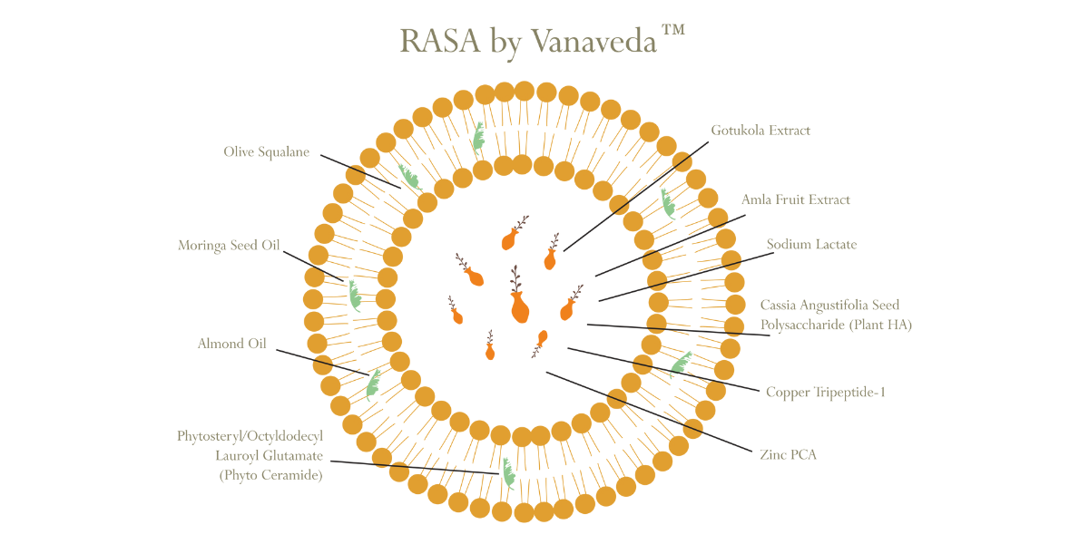 RASA by Vanaveda™ is a next-generation formulation that builds on this ancient knowledge while leveraging liposomal technology to optimize the delivery of botanical actives. Unlike traditional Ayurvedic decoctions that may struggle with bioavailability and stability, RASA utilizes multi-lamellar liposomes, mimicking the skin’s natural lipid barrier for precise and efficient delivery.